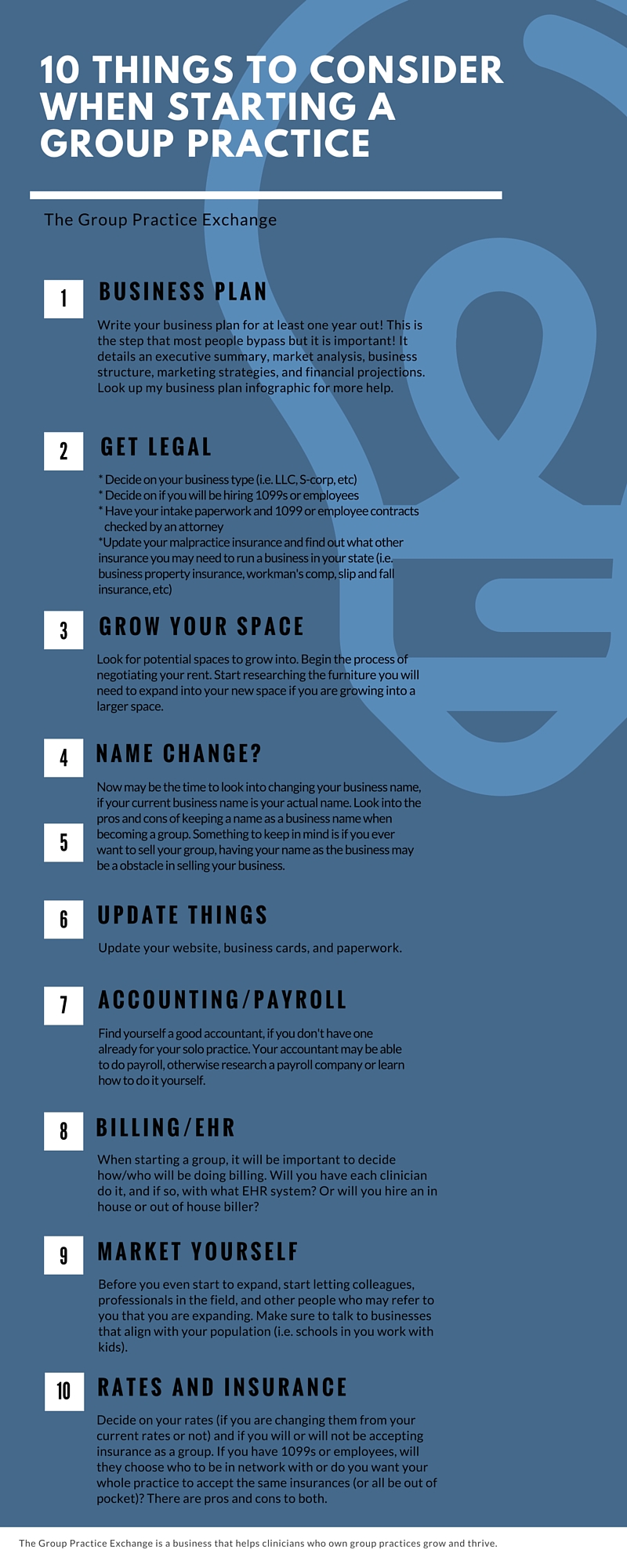 Do some research on how therapy group practices tend to run. Here are resources on that:​​